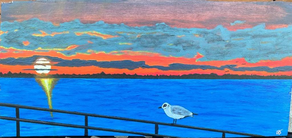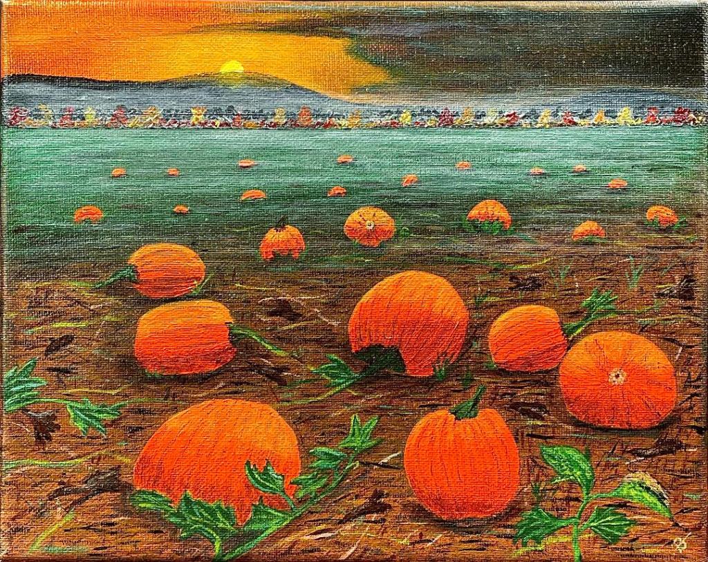 Briggs Road Schoolhouse, Sloansville, New York – Schoharie County – Acrylics on canvas board-8×10Autumn pumpkin patch – Acrylics on canvas board-8×10Sunset Seagull – – Acrylics on wood slab -7.5″ x 15.5″City Scape Sunset – Acrylics on canvas board-8×10City Scape Sunset framed – Acrylics on canvas board-8×10Saw Tooth Oak – Acrylics on canvas board-9×12Sunrise on the woodland marsh – Acrylics on wood slab -7.5″ x 15.5″Sunset dock – Acrylics on wood slab -7.5″ x 15.5″